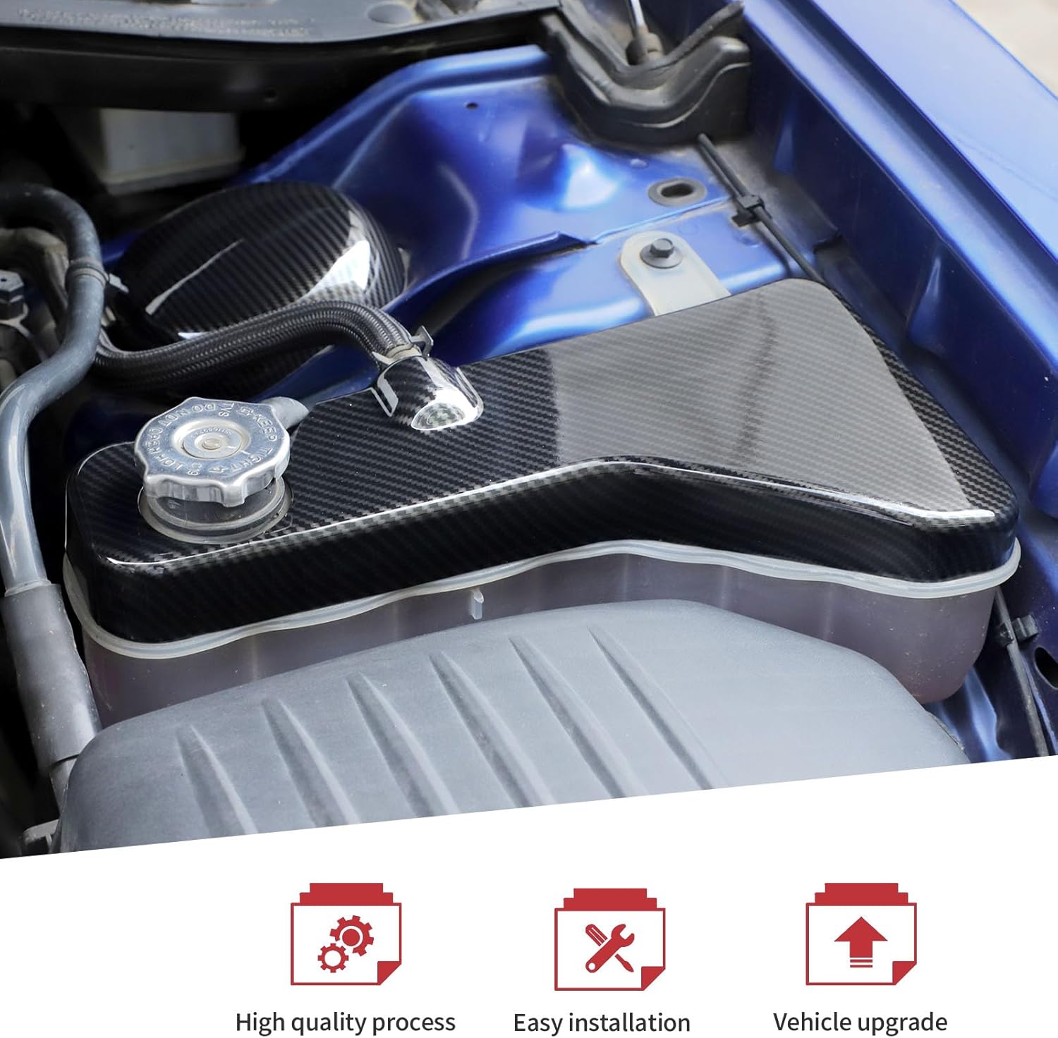 Item Description: JeCar 6pcs Carbon Fiber Hood Engine Bay Cover Kit Coolant Windshield Washer Cover Wire Dust Cover for 2011-2023 Dodge Charger Interior Accessories - Fit for 2011-2023 Dodge Charger Condition: 100% Brand New Material: ABS Color: Carbon Fiber Features - They can cover your Charger coolant tank & windshield washer cover & wire dust cover & hood lock and provide protection for them, keeps the engine compartment clean and tidy and enhances the appearance of the engine compartment. - Made of high-quality ABS plastic material, it has good stability, strength, weather resistance, and durable. - Original factory data design, perfect match. - Come with double-sided tape for an easy and fast installation. Installation Tips: * Please clean the covered area thoroughly; keep it dry without dust; * Heat the adhesive tape with a hair dryer or lighter; * Paste the accessories in the corresponding position and press them with your hand to make them more solid. Package Included: 1* Engine Coolant Tank Cover 1* Windshield Washer Cover 1* Hood Wire Dust Cover 1* Hood Lock Bolt Dust-Proof Cover 2* Engine Bay Side Suspension Cover Decoration Covers